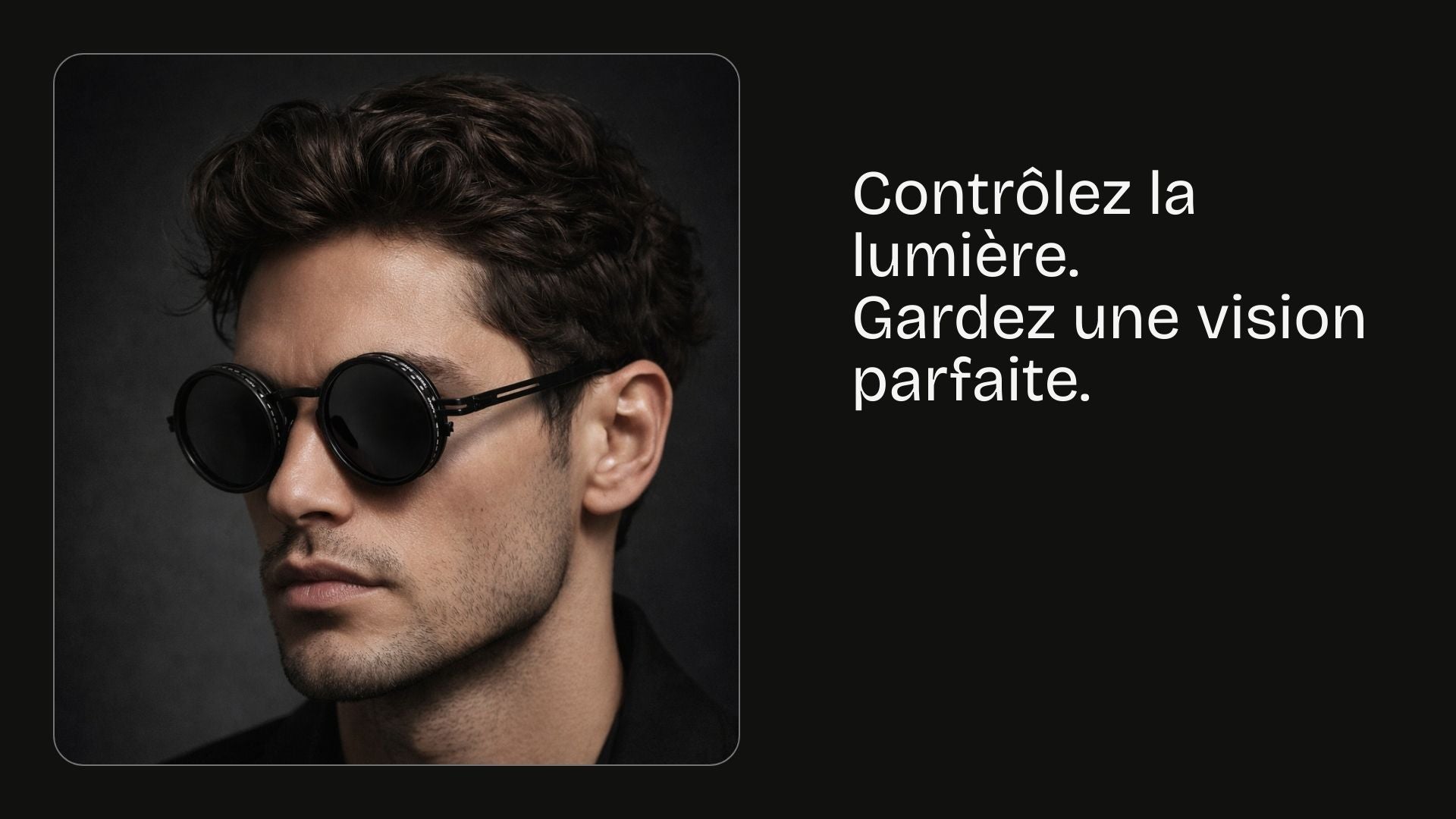 Un simple réglage et vos verres deviennent plus clairs ou plus foncés selon la luminosité.